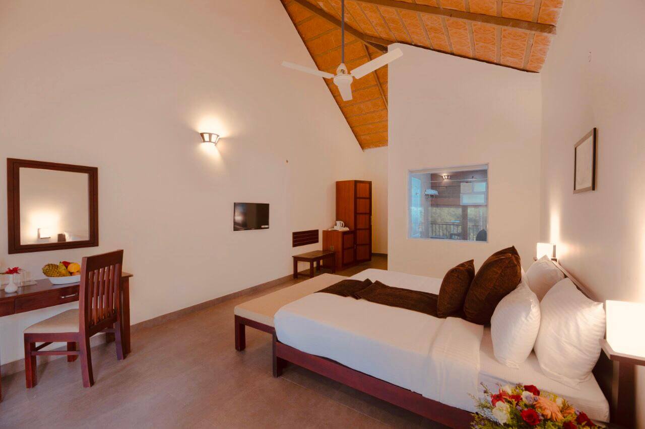 It has 18 well furnished and tastefully decorated cottages that offers a serene garden view. The room size of 144 sqft is facilitated with queen bed for accommodation.