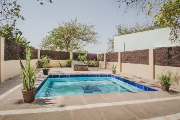 The Pugmark Resort is situated on the outskirts of Ranthambore National Park. Offering a perfect blend of comfort and luxury for your vacation. Covered with an area of more than 5 acres, it is situated at the edge of the Ranthambhore National Park in Rajasthan. Aravali Ranges are visible from the property, which is surrounded by trees. Five minutes drive will take you to the main entrance of the reserve. Architects and landscapers have combined to create a pleasing facade of modern architecture and imaginative landscaping. You are captivated by the total change of atmosphere, the luscious lawns and manicured gardens create an enchanting aura.